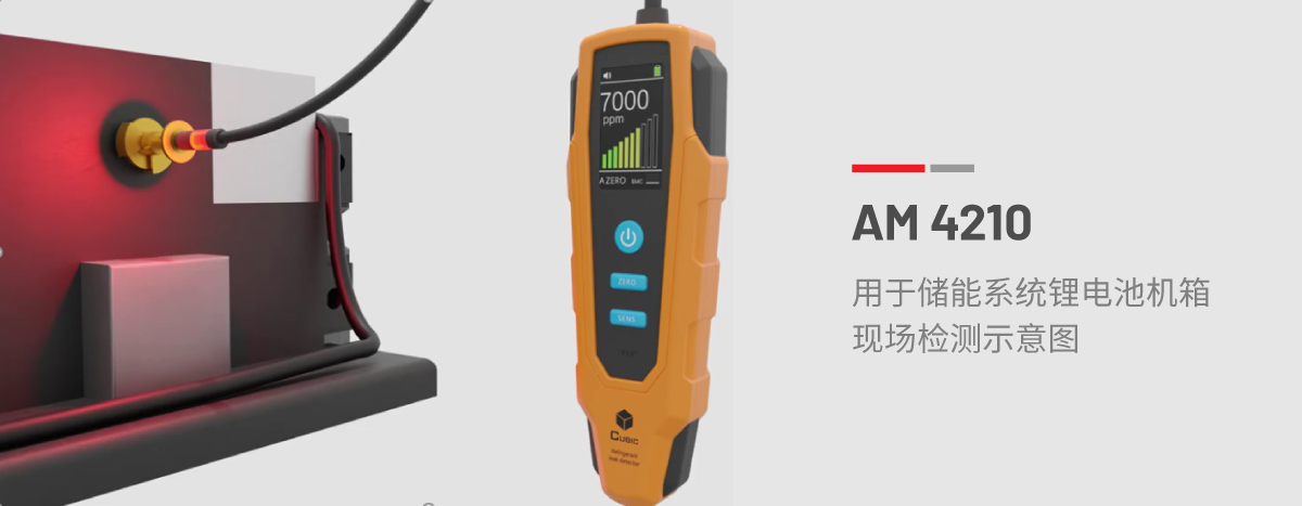 AM4210 主要面向鋰電池后市場性能檢測(如電動汽車、儲能系統(tǒng)機箱)的日常巡檢與泄漏排查,在保證可靠檢測的前提下,更強調(diào)便攜性、操作靈活性與泄漏點快速定位。設(shè)備集泄漏點探測與濃度定量分析于一體,采用自主知識產(chǎn)權(quán)的紅外傳感器,對電解液特征組分選擇性良好。檢測到泄漏時,儀器根據(jù)濃度差異分級顯示泄漏等級,蜂鳴器同步報警,鵝頸探頭前端的紅色LED燈可精準(zhǔn)指示泄漏位置,便于現(xiàn)場人員快速處置。設(shè)備內(nèi)置大容量鋰電池,支持重復(fù)充電使用,并配有標(biāo)準(zhǔn)Type-C充電接口,滿足現(xiàn)場靈活、便捷的檢測需求。