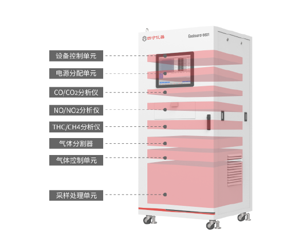 發(fā)動(dòng)機(jī)排放測(cè)試系統(tǒng)作為Gasboard-9802的核心氣體分析單元,包括控制單元、電源分配、多組分分析儀、氣體分割與處理等模塊,具有以下特點(diǎn):