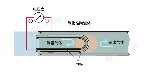 氧化鋯是一種優(yōu)良的固體電解質(zhì)材料。傳統(tǒng)氧化鋯氧傳感器由多孔高溫陶瓷電解質(zhì)管構(gòu)成,管內(nèi)外壁均涂覆多孔鉑層,分別作為陰極和陽(yáng)極。傳感器內(nèi)置高性能陶瓷加熱器與熱電偶探頭,共同維持可控的高溫環(huán)境(通常為650℃)。