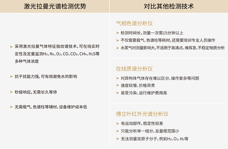 在熱值監(jiān)測領(lǐng)域,激光拉曼光譜技術(shù)具有突出優(yōu)勢。以往舊式熱值儀往往只能監(jiān)測總碳氫化合物的熱值總量且易受水分影響,而四方儀器激光拉曼光譜氣體分析儀可以分別監(jiān)測顯示各組分熱值,采用的特征指紋譜技術(shù)具有極強的抗干擾能力。在氣體監(jiān)測領(lǐng)域可取代氣相色譜(GC)與質(zhì)譜(MS):