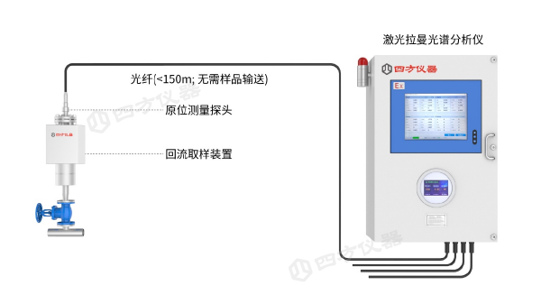 為了更好滿足工業(yè)過程控制多組分氣體檢測的實際應(yīng)用需求,四方儀器新開發(fā)了LRGA-3200EX原位激光拉曼光譜氣體分析儀(圖3)。LRGA-3200EX主要由取樣裝置、原位測量探頭、光纖、激光拉曼光譜分析儀和系統(tǒng)軟件組成,具有測量氣體物種多、功能全面、安裝方便、快速、準(zhǔn)確等特點。