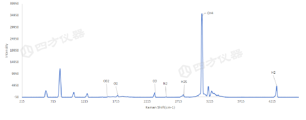 LRGA-3200EX對煤氣化裝置洗滌塔出口中粗煤氣樣品進(jìn)行拉曼光譜掃描分析得到的拉曼光譜圖(圖4)顯示,CO、CO2、CH4、H2S、H2、O2和N2等組分具有可區(qū)分的特征峰,通過計量特征峰峰高可同時測定各組分氣體的含量。