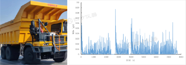 圖9 寬體自卸車實(shí)際工況排放測試現(xiàn)場與NOx質(zhì)量排放數(shù)據(jù)