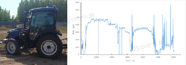 圖10 拖拉機(jī)實(shí)際工況排放測試現(xiàn)場與NOx質(zhì)量排放數(shù)據(jù)