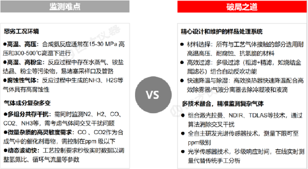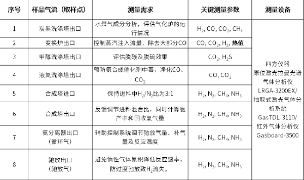 以煤為原料的合成氨裝置的樣品具有高溫、高壓、高濕、高粉塵以及高腐蝕性等顯著特點(diǎn)。其次,合成氨裝置是一種快速且劇烈的反應(yīng)裝置,工藝人員需要及時了解各階段反應(yīng)生成的物料質(zhì)量狀況,以便迅速調(diào)整工藝。同時,合成氣成分復(fù)雜,主要包含H2、CO、CH4、CO2、N2、H2S等成分。這些特性給在線分析儀表帶來了巨大挑戰(zhàn)。