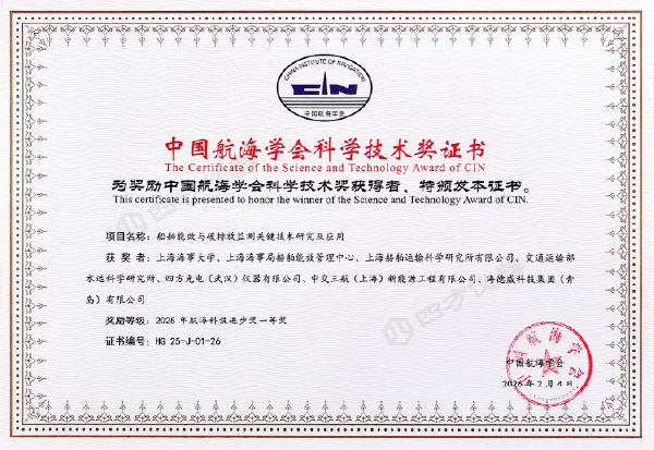 2025 年度中國航海學會科學技術進步獎評選結果公布,四方儀器攜手上海海事大學、上海海事局、交通運輸部等多家單位聯(lián)合研發(fā)的船舶能效與碳排放監(jiān)測關鍵技術研究及應用成果,榮獲航海科技進步獎一等獎!