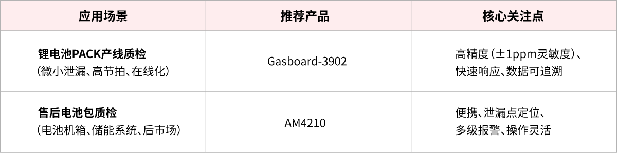 目前,處于征求意見階段的國家標(biāo)準(zhǔn)《鋰離子電池生產(chǎn)質(zhì)量管理》明確提出,在鋰電池及相關(guān)產(chǎn)品生產(chǎn)環(huán)節(jié),應(yīng)使用專業(yè)設(shè)備進行電解液泄漏檢測。面對電池化學(xué)成分多樣化、生產(chǎn)節(jié)拍高速化的現(xiàn)實挑戰(zhàn),構(gòu)建快速、高效的泄漏檢測體系,已成為行業(yè)質(zhì)量管控的核心環(huán)節(jié)。1、鋰電池PACK產(chǎn)線質(zhì)檢:泄漏量極為微小,對檢測精度、靈敏度及低檢出限要求極高;檢測系統(tǒng)須具備快速響應(yīng)能力,以匹配高速流水線節(jié)拍,同時支持在線化、數(shù)據(jù)可追溯,便于集成于自動化生產(chǎn)管理系統(tǒng)。